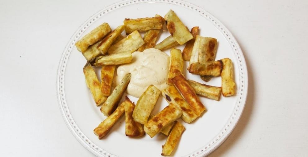 - Pour the mixture over the cut fries and mix with your hands to get all the fries fully coated.