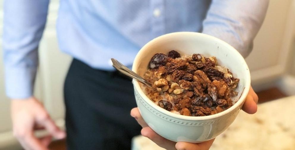 Every morning Dr. Sterling eats this high protein, gluten-free, plant-based oatmeal bowl. You can change it up depending on the season, enjoying the fresh fruits or nuts in season. You can make it as unique as you want by adding different nuts, spices or sweeteners. Start your day off right with this protein packed oatmeal!